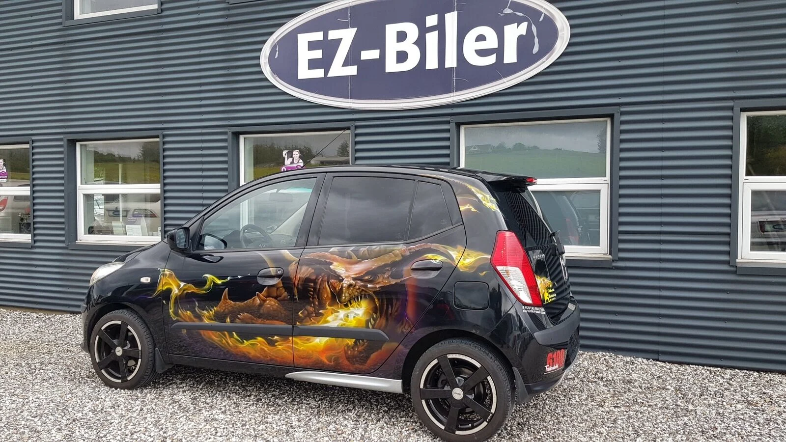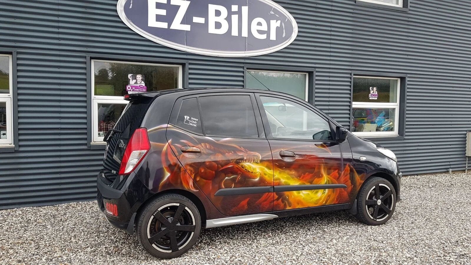 Som du nok kan se, er det ikke kun anlægget, der har fået en Brian-overhaling i denne Hyundai i10. Udadtil har den også fået en vild og sikkert svinedyr tur med en airbrush, der har dekoreret den sorte økoracer med en ildspyende drage. Her får du altså kæmpeanlæg, unik lakering og benzinøkonomi på +20 km/l for bare 34.900 kr. Se bilen her.