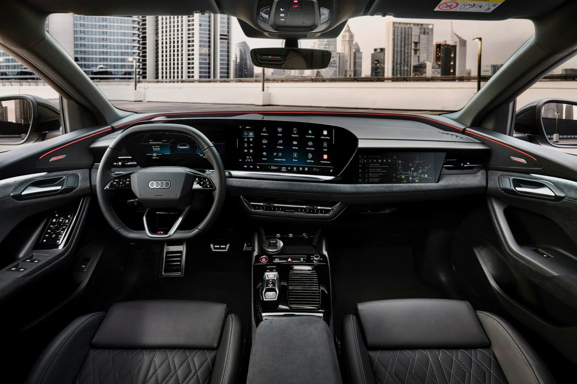 Audi debuterede tidligere i år sit nye interiørdesign- og layout med Q6 E-Tron, og der er tilsyneladende ikke den mindste forskel i overførslen til Sportback-udgaven. Der er skærme en masse – instrumentering med 11,9″ skærm, MMI-infotainmentsystem med 14,5″ touchscreen og et MMI-display på 10,9″ til personen i passagersædet.