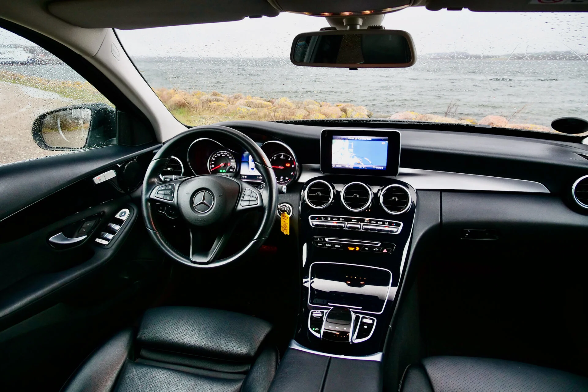 Den sorte sedan fra Odsherred Bilcenter er fra lige før faceliftet, men rent kosmetisk var ændringerne dengang overskuelige; eksteriør såvel som interiør adskiller sig i detaljer, ikke i store træk. Bag rattet kan den faceliftede C-Klasse kendes på et nyt rat og infotainmentsystem med skærm i bredformat.