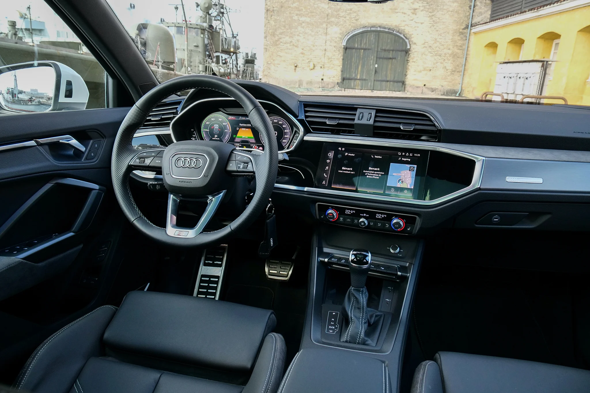 Det gør Q3 45 TFSI e. Den er markant billigere, og hvis man så kan klare sig med mindre standardudstyr, får man stadig en lækker bil med okay udstyr. Den har en meget mere harmonisk drivlinje, og den virker som en crossover uden de store minusser.