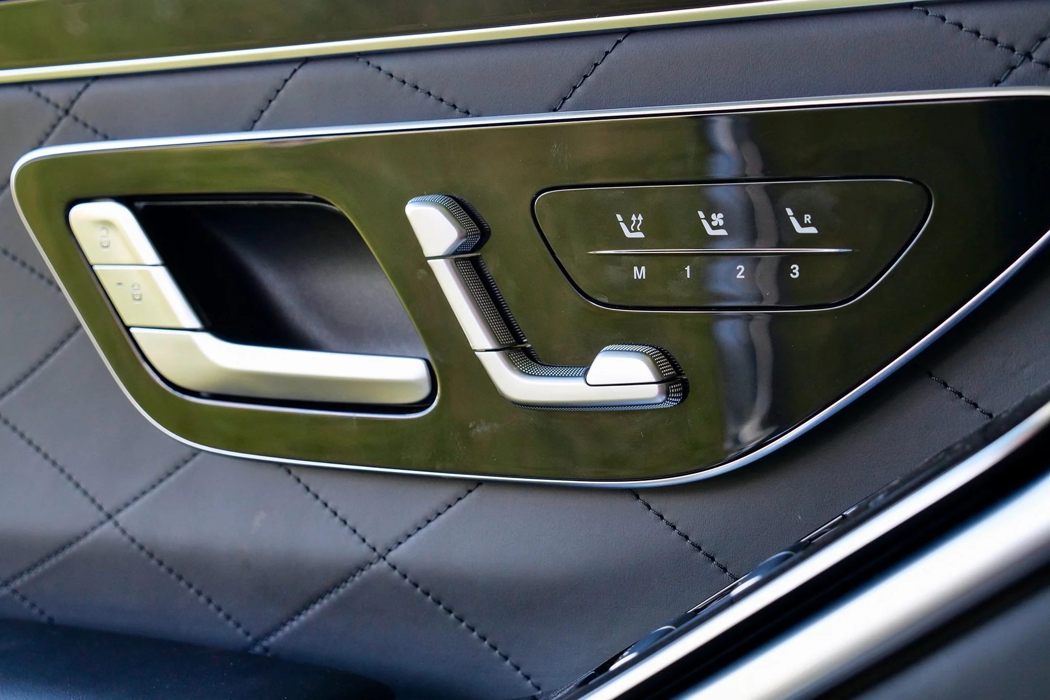 Den nye S-Klasse praler med sit enorme head-up-display med augmented reality (virtuelle pile, som ‘flyver’ over vejbanen), skulpturelle design og interessante materialer. Men jeg kan ikke 100% genfinde den ekstreme soliditet og den tyngde i materialerne, som jeg har oplevet i flere tidligere generationer af S-Klassen. Det store instrumentpanel skal nok ligne en form for træ, men både på afstand og ved berøring er det ikke lækkert. De udvendige dørhåndtag fås i to varianter. De elektro-mekaniske på testbilen, som forsvinder ind i bilen under kørsel, er lidt af en udfordring. De virker billige, og de virker slet ikke hver gang, jeg prøver at komme ind i bilen.