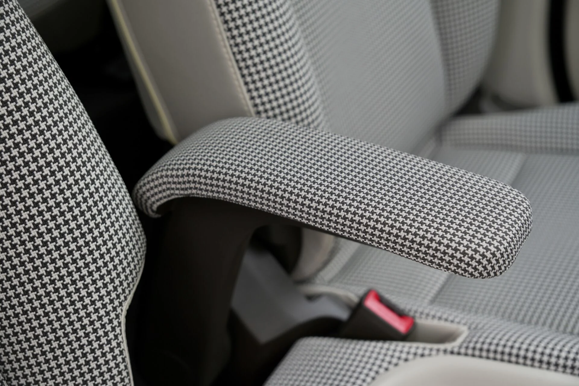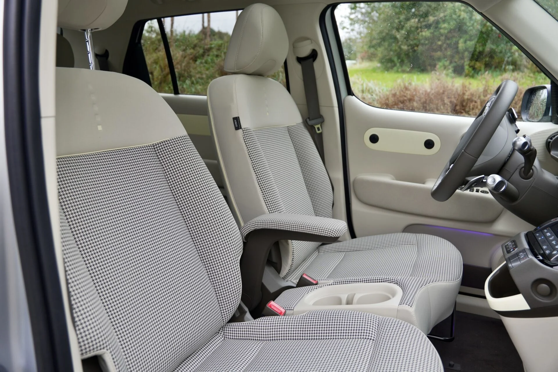 Det første der falder i øjnene, når man åbner døren til Inster, er forsæderne. Ikke alene er de svøbt i et materiale, der minder om sofaen i mormors kolonihavehus – de er også formet som den! De to stole står som smeltet sammen i midten, så det ligner en sofa. Det giver et luftigt udtryk i den ellers smalle kabine og gør desuden, at man let kan glide over på passagersædet, hvis man har parkeret tæt.