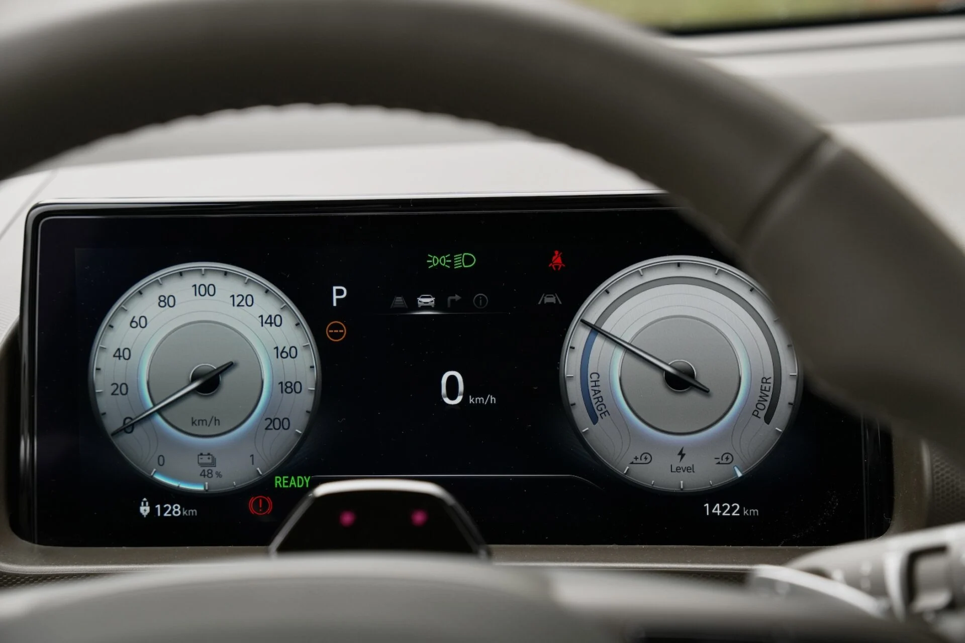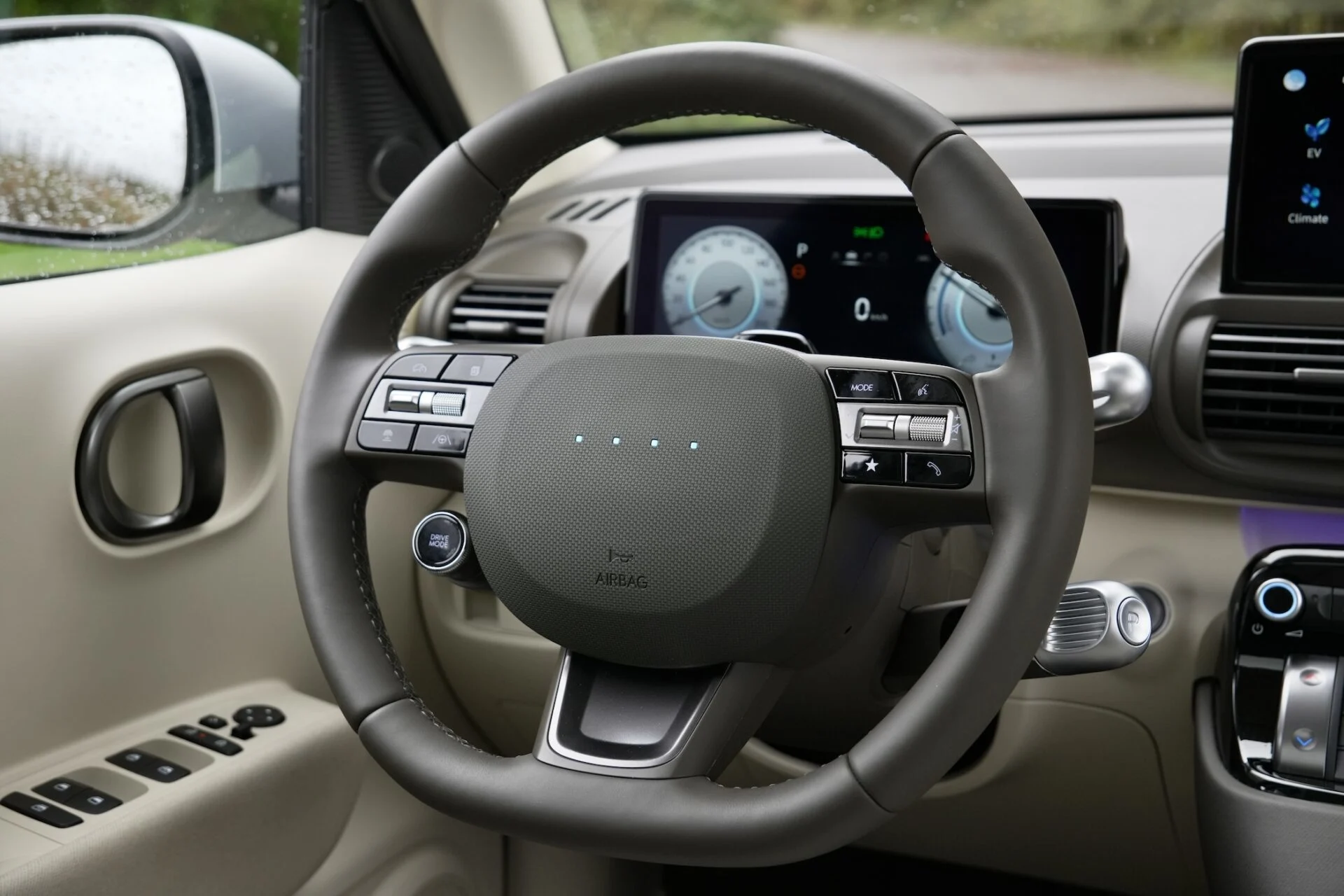 De to 10,25” skærme er genkendelige fra andre Hyundai-modeller. Det samme er gearvælger og rat, hvor sidstnævnte har tydelige trykknapper og let betjening. Den store overraskelse er mængden af knapper i instrumentbordet til klima- og lydanlæg. Alle ved, at trykknapper er dyrere end touchknapper, så at Inster har så mange, er en overraskelse, der betaler sig ved at gøre al betjening legende let.