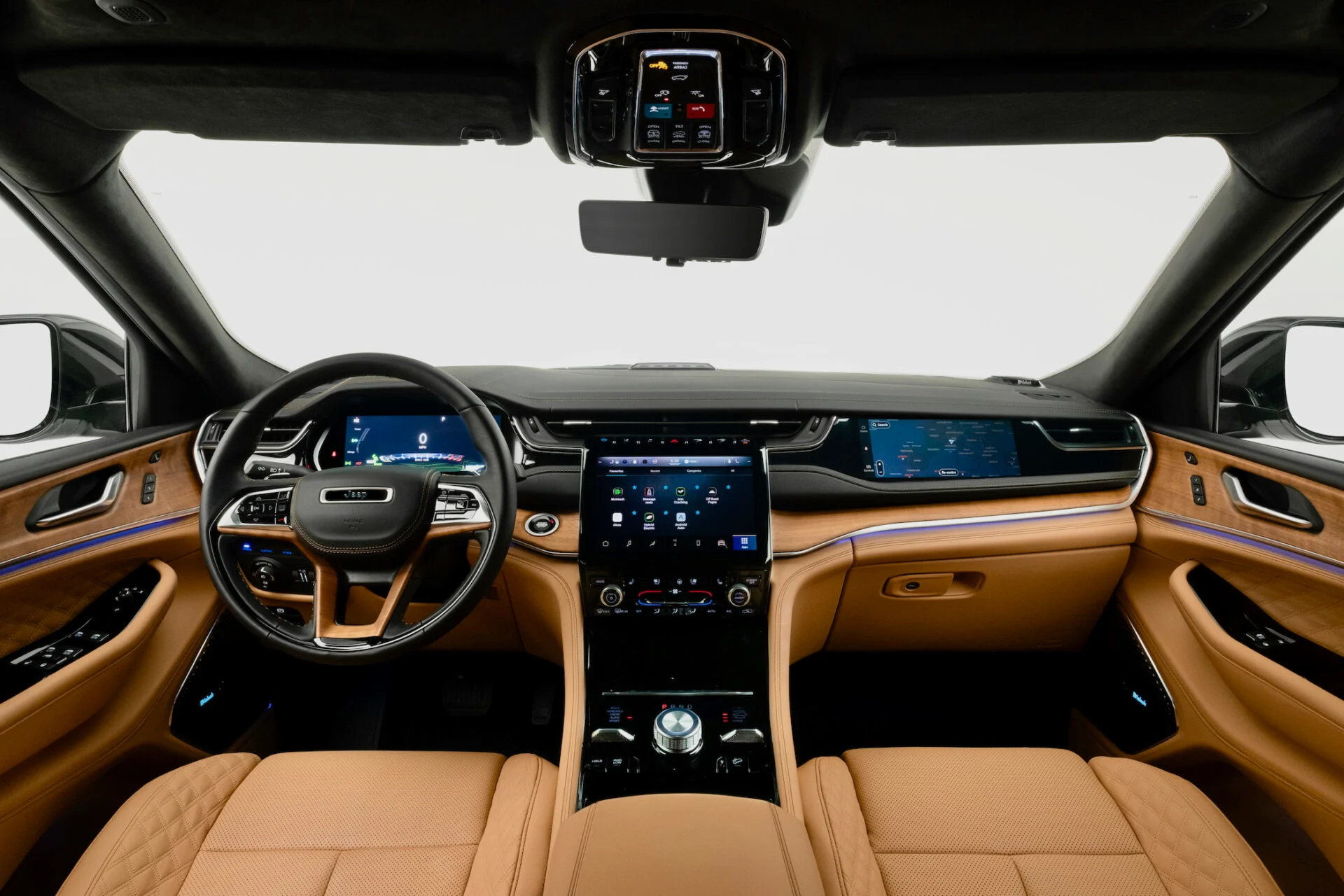 Jeg får det måske til at lyde som om, den nye Grand Cherokee ikke er velkørende. Det er den måske ikke i direkte sammenligning med europæiske biler i samme klasse, men der er noget tilbagelænet og mindre stressende ved at køre den. Jeg ved, den er stor, at den føles stor, og det er mere en konstatering end et kritikpunkt. Grand Cherokee 4XE har den luksus og de lækre detaljer, som ingen Grand Cherokee nogensinde før har haft. Den er ikke længere 5-10 år efter europæerne, og bare et eksempel er nok: Man kan få den med 10” skærm til forsædepassageren, som kan have sin egen underholdning foran sig. Det kan man endnu ikke i Q7, X5 eller GLE.