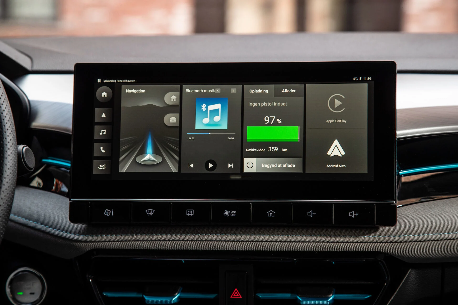 Med 80 procent opladet batteri, da jeg triller af sted, siger rækkevidden omkring 290 kilometer. Det er altså for Luxury-versionen, som har en WLTP-rækkevidde på 380 kilometer med 100 procent opladet batteri. Men en test af rækkevidden må vente til vi får MG5 Electric til test i længere tid. Opladning sker med op til 87 kW, så her satser MG altså på, at folk lader op hjemme, hvor der maksimalt kommer strøm ind med 11 kW.