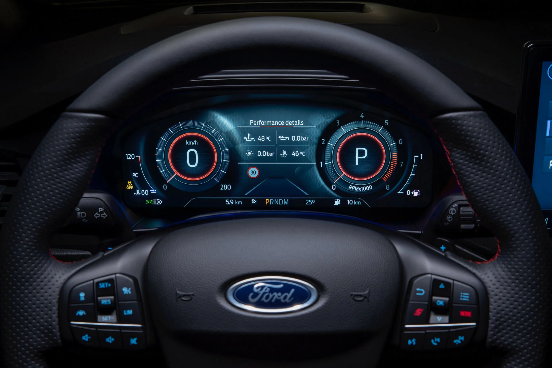 Det store system er også standard i den dyreste Focus-standardversion, ST-Line X. Det samme er 12,3″ digital instrumentering, bakkamera, nøglefri betjening og trådløs opladning af smartphones. 17″ alufælge er også med uden merpris.