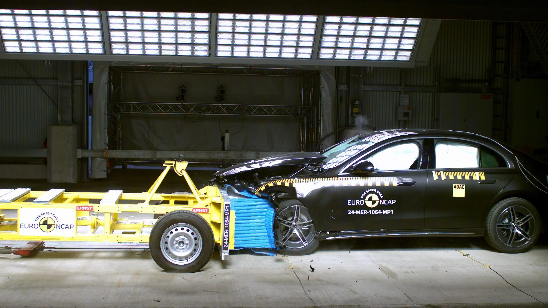 Den mest sikre bil, som Euro NCAP testede i 2024, var Mercedes-Benz E-Klasse. Den luksuriøse direktørbil fik den højeste samlede score, baseret på et vægtet gennemsnit af de fire sikkerhedskategorier, som Euro NCAP vurderer efter: Beskyttelse af voksne passagerer, beskyttelse af børn, beskyttelse af udsatte trafikanter og elektroniske sikkerhedssystemer.