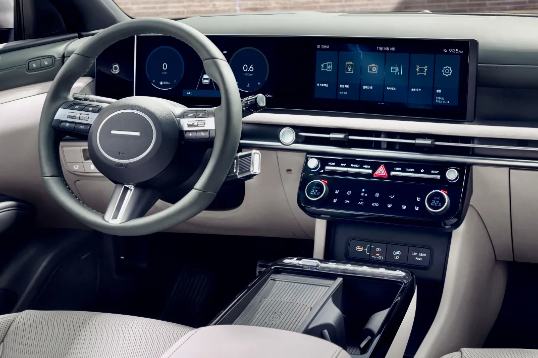 På billederne er det tydeligt, at der er en helt ny digital instrumentering og nyt infotainmentsystem. De to ting er samlet i et fælles panel, som giver er mere moderne indtryk. Det nye infotainmentsystem, også kendt fra Kona, er mere logisk bygget op og reagerer generelt hurtigere. Luftdyserne sidder meget lavere end før, hvor de sad højt i instrumentpanelet.