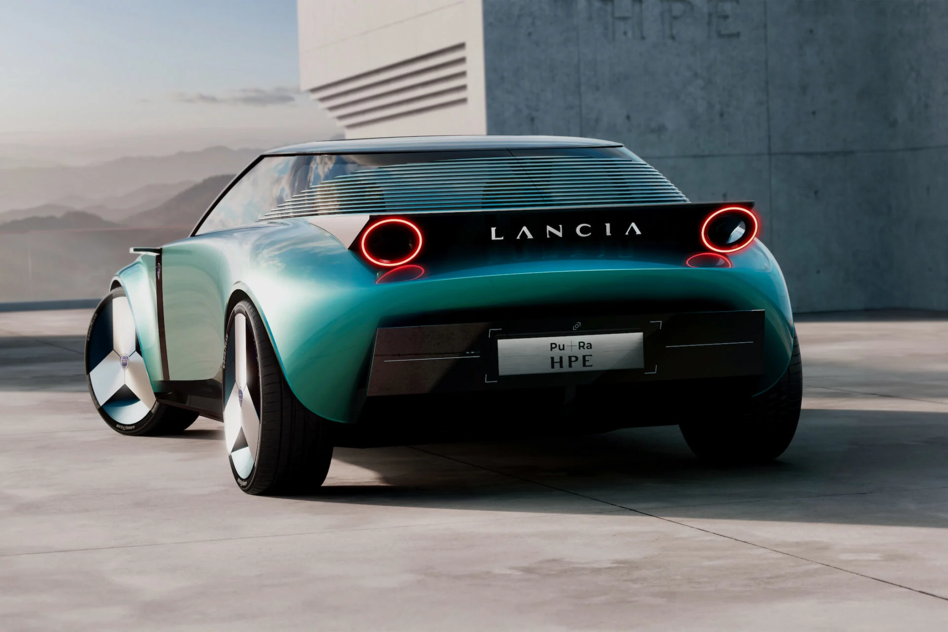 Konceptbilen Pu+Ra HPE er et design, der både peger fremad og bagud. Set bagfra er bilen meget lig 2010-udgaven af Stratos, og det bliver spændende at se, hvordan det kan overføres til en ny udgave af minien Ypsilon og en ny Delta.