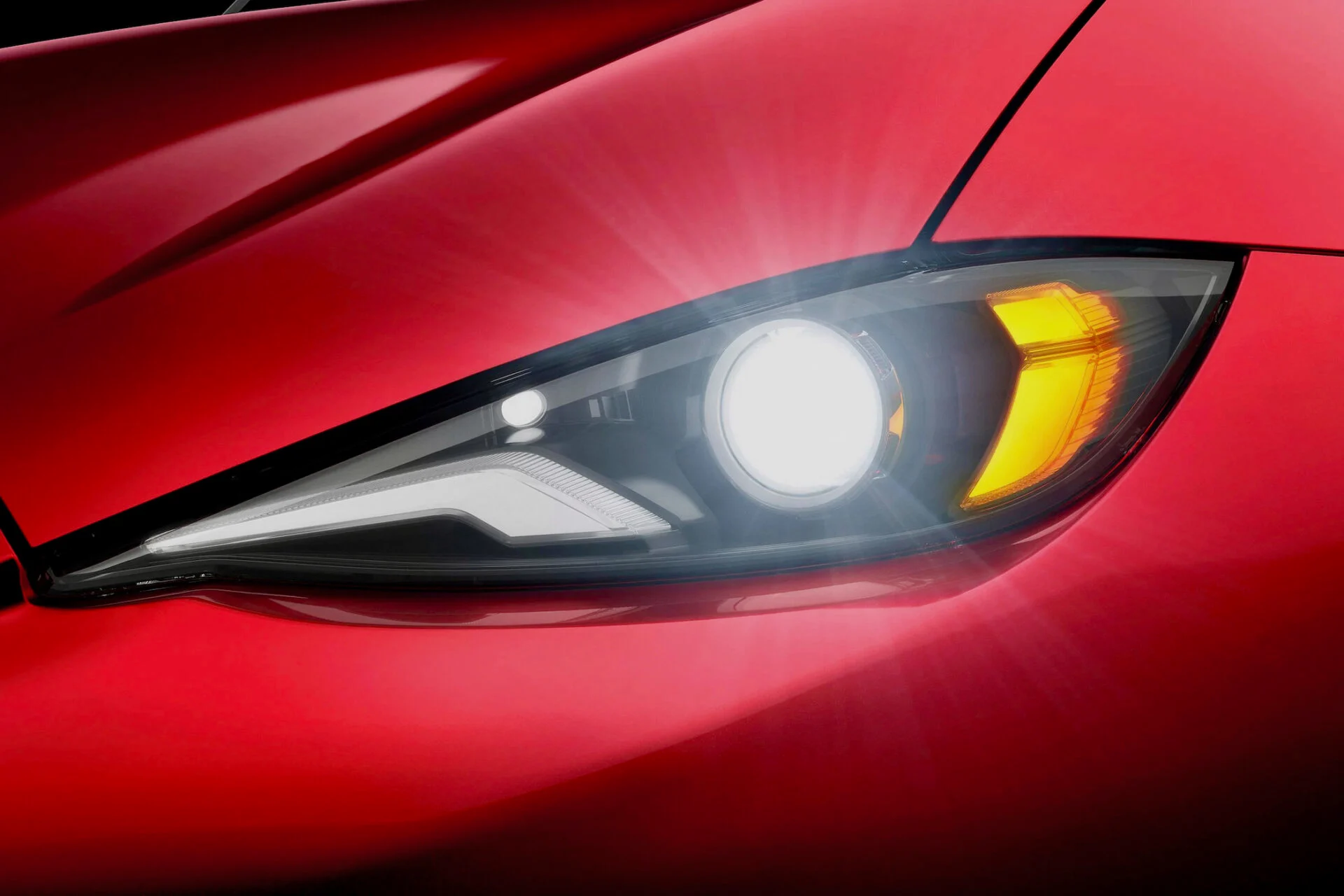 LED-kørelysene var før små enkeltstående dioder i kofangeren, og nu er de på elegant vis integreret i forlygterne. Et mere rent udtryk til den køreglade roadster. I grillen sidder nu en sort plade, som huser radaren til den adaptive fartpilot. Ja, sådan en MX-5 kan næsten køre selv, hvis man skal slæbe sig af sted i en kø på motorvejen.