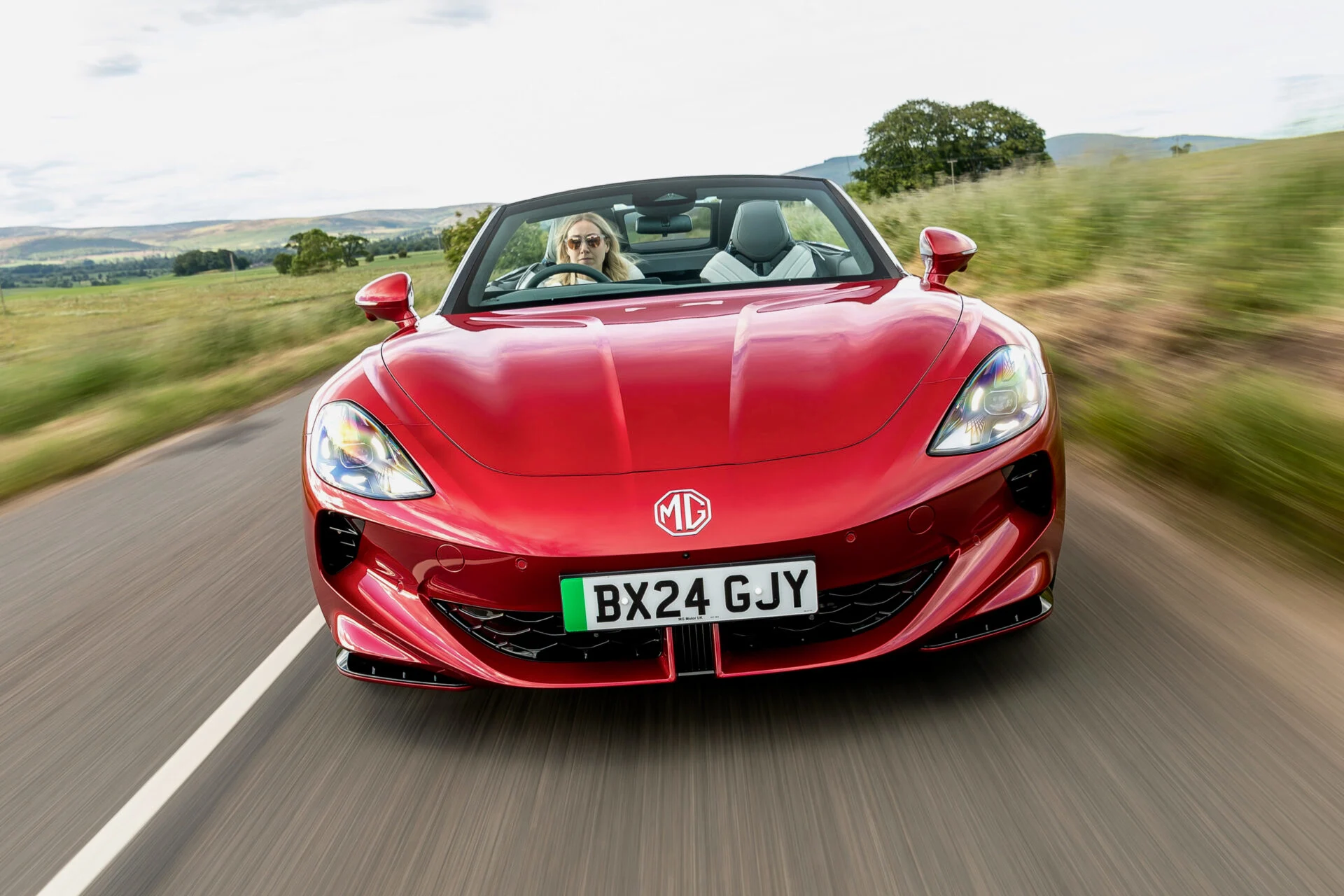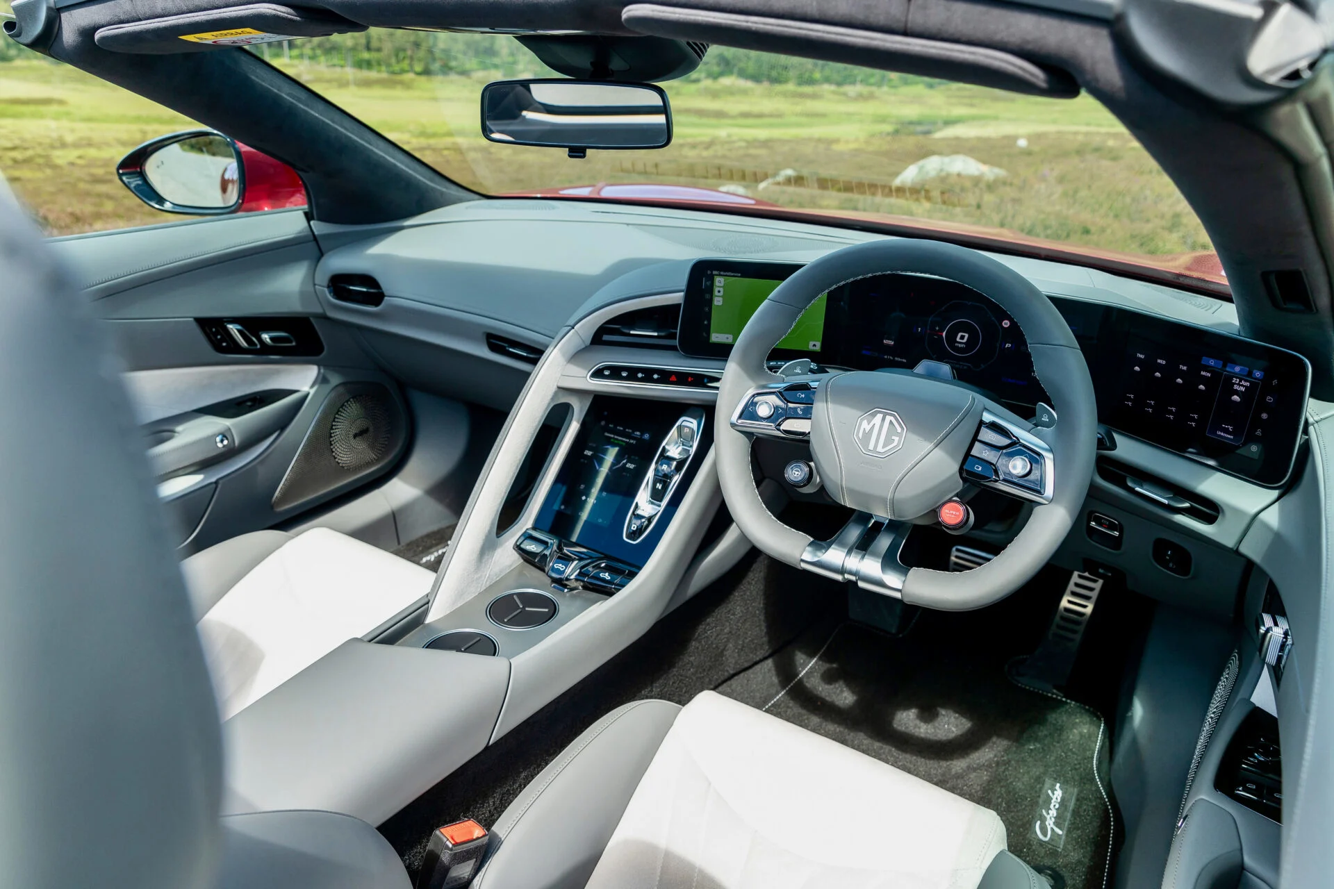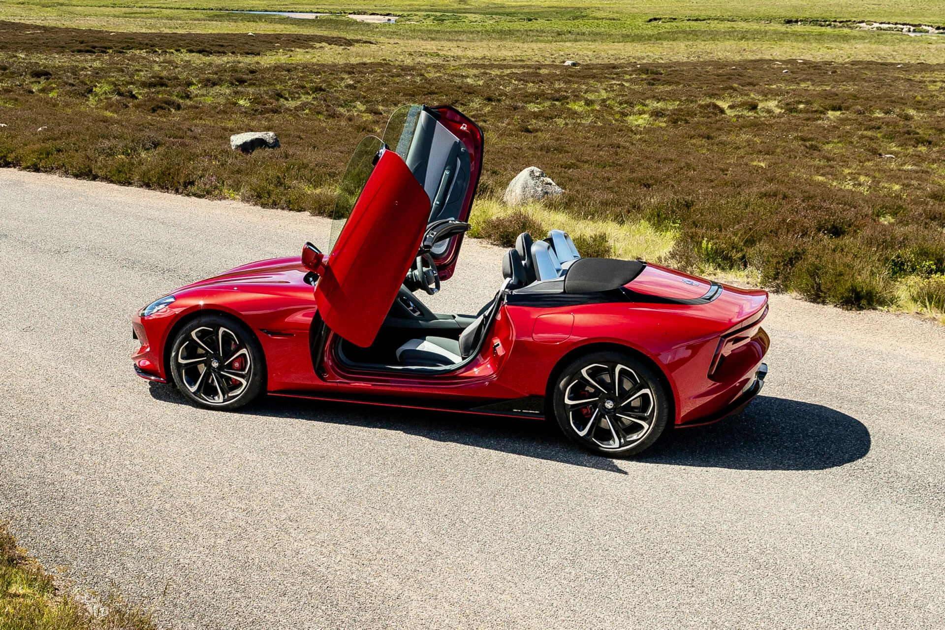 Saksedøre. De særprægede og komplicerede døre hører mere supersportsvogne til, men MG monterer dem på Cyberster som et middel til at få opmærksomhed – hvis ikke roadsterens design i sig selv kan gøre det. Når dørene er åbne, vil de tiltrække opmærksomhed; Cyberster er en “se-mig-bil”.
