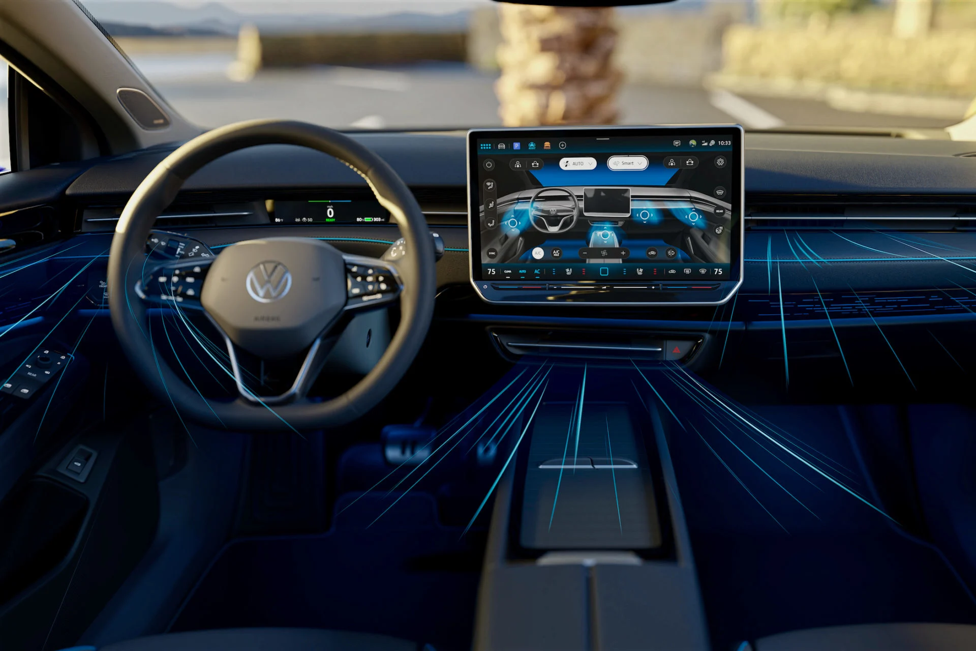ID.7 kommer til gengæld med et klimaanlæg, som automatisk starter opvarmning eller nedkøling af kabinen, når man nærmer sig bilen. Sedanen har også “Smart Air Vents” – luftdyser som bevæger sig dynamisk og automatisk for at give optimal luftfordeling. Det lyder som noget fra en Audi A8, men det er altså noget, VW nu tilbyder.
