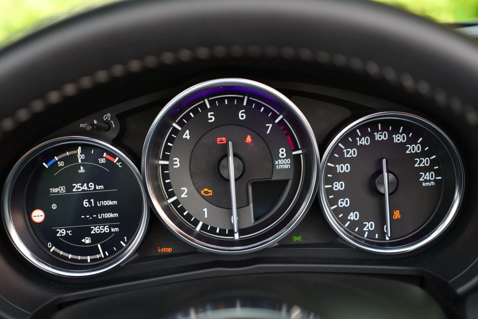 Man kan trygle og pive så meget man har lyst – MX-5 1,5 kommer kun med 16” hjul og ikke med tårnstiver, Bilstein-undervogn, 17″ hjul og Brembo-bremser, som Homura-udgaven af MX-5 2,0 er beriget med. Det heldige er så, at MX-5 ikke har brug for så meget forstærkning for at være som en atlet i perfekt balance. En smule krængning er en del af charmen i MX-5, og den får man mest i ikke-Homura-versionerne. 1,5’eren har med sine 16” hjul en smidighed i affjedringen, som jeg ikke havde forventet. Hvis man, rent fysisk, kan finde plads i MX-5 til mere end 800 kilometer på danske motorveje, som jeg ender med at køre, er komforten længder bedre i MX-5 1,5 end i MX-5 2,0 med Bilstein-undervogn. Bilstein og tårnstiver fjerner krængning og filer præcisionen til, men så stor er forskellen heller ikke, at et liv uden bliver ubærligt.