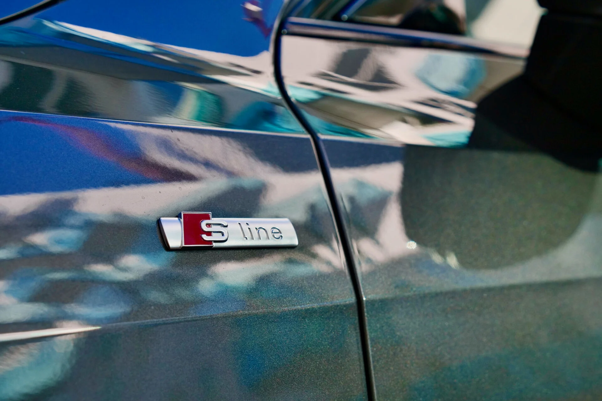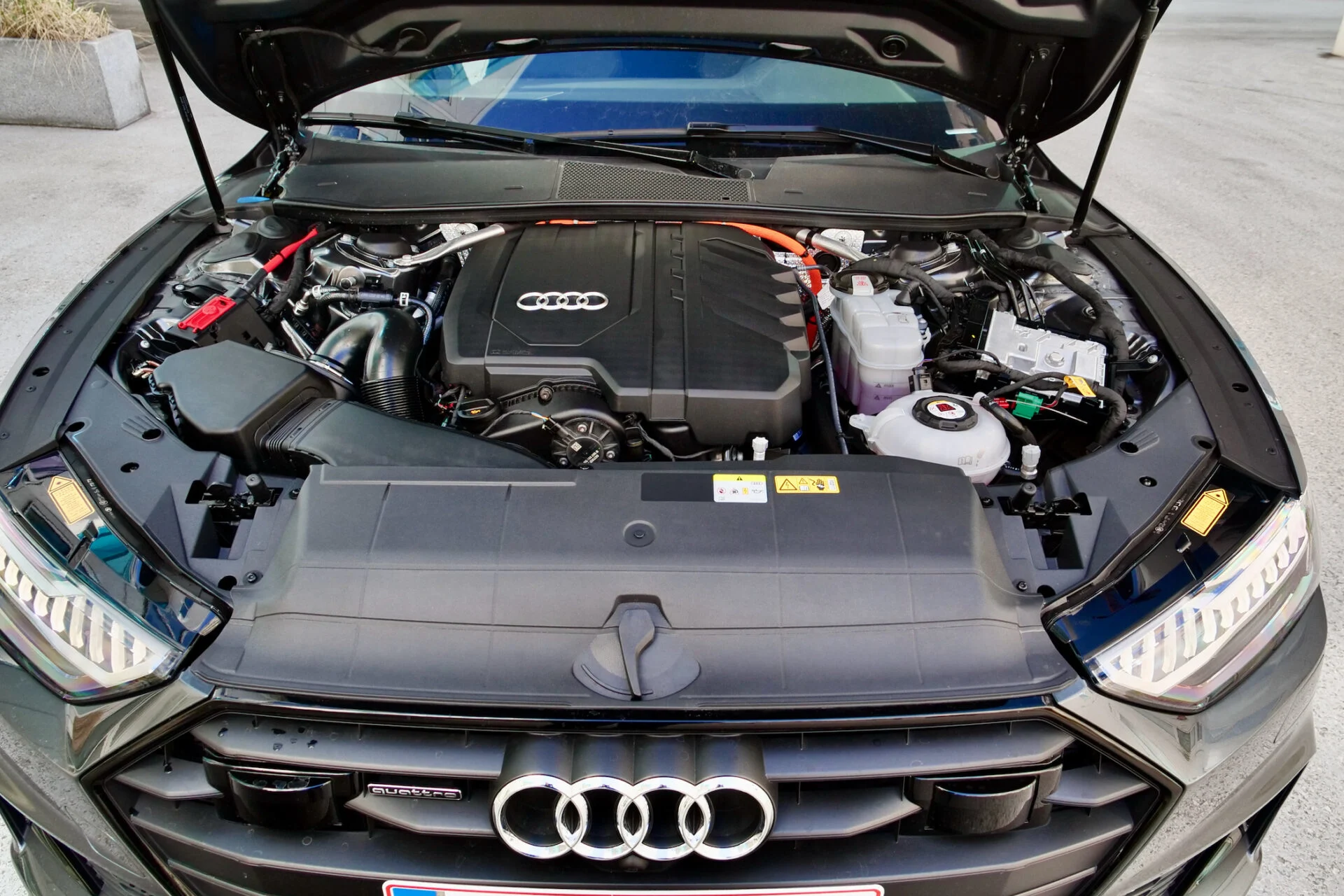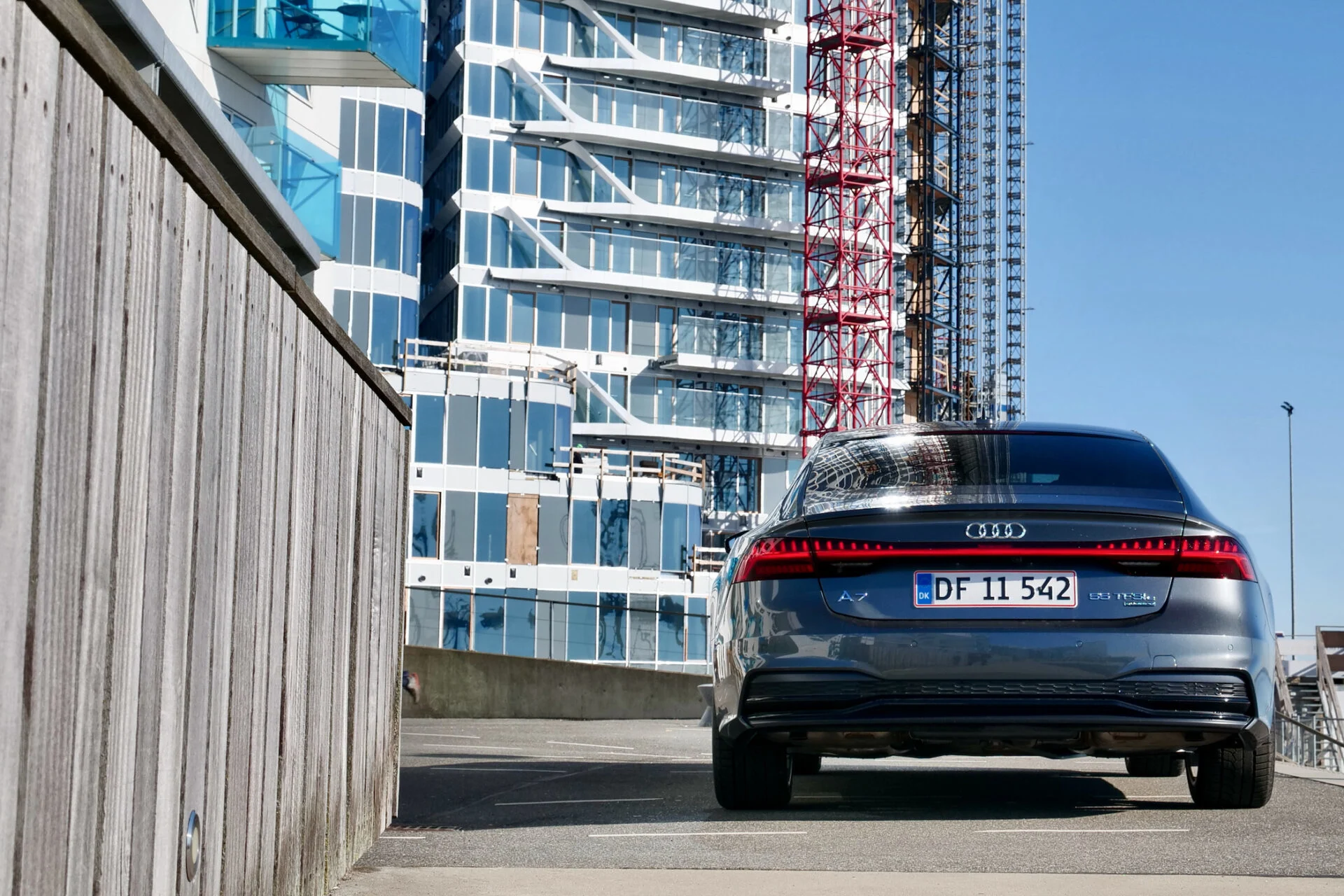 Modelnavnet er langt, og jeg kunne bruge flere afsnit på at skære det ud i små bidder. Men det bliver for meget. Jeg tager nogle store bidder. 55 er Audis måde at tale ydelse, i hestekræfter og Nm, og 55’eren med 367 hk ligger så over 50, som har 299 hk. Simpelt. Sådan da. TFSI er benzinmotoren, og E er plug-in hybrid. Mange års skoling som bilinteresseret har lært os, at Quattro er firehjulstræk, og videre derfra handler det mest om udstyr: S Line er lig med sorte detaljer, sportsundervogn og sæder som i en S-model (som S7 Sportback).