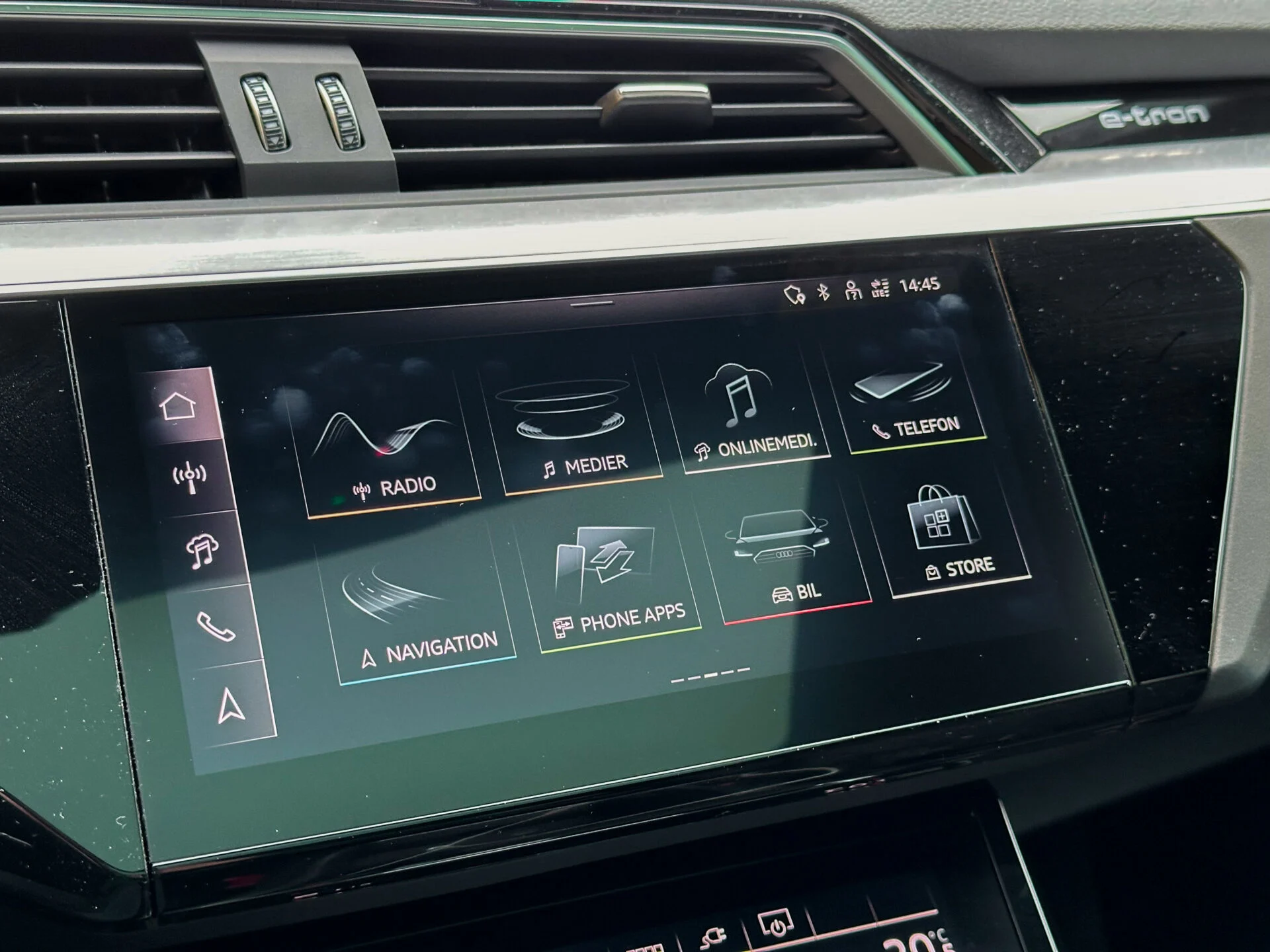 Bag læderrattet findes en 12,3” skærm til instrumentering, der har alt det, man skal bruge. Alderen begynder dog så småt at kradse for infotainmentskærmen på 10,1”, der også sad i e-tron i 2019. Med den alder kunne det være værre, og skærmen er stadig responsiv og klar i sin opløsning. Layoutet er også nydeligt, men det bliver hurtigt kringlet i undermenuerne.