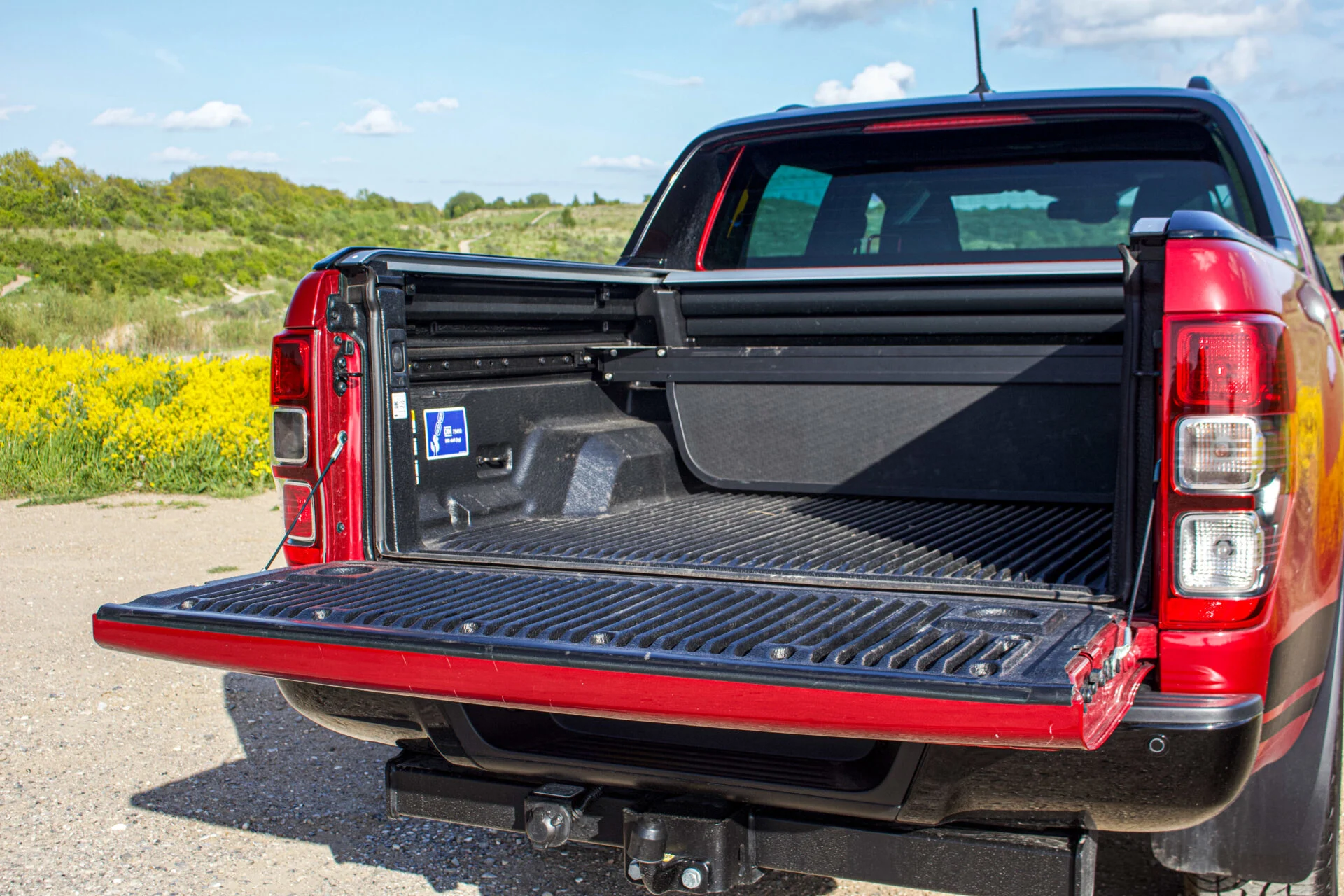 Til venstre for rattet findes en knap, der ruller dækkenet over ladet tilbage elektrisk. Fra lædersædernes lune kan du derfor gøre plads til læs på ladet og lade praktikanterne klare slæbet. Imens kan du betragte de røde kontrastsyninger i instrumentbordet eller sætte din yndlings podcast på via Apple CarPlay eller Android Auto, der er standard.