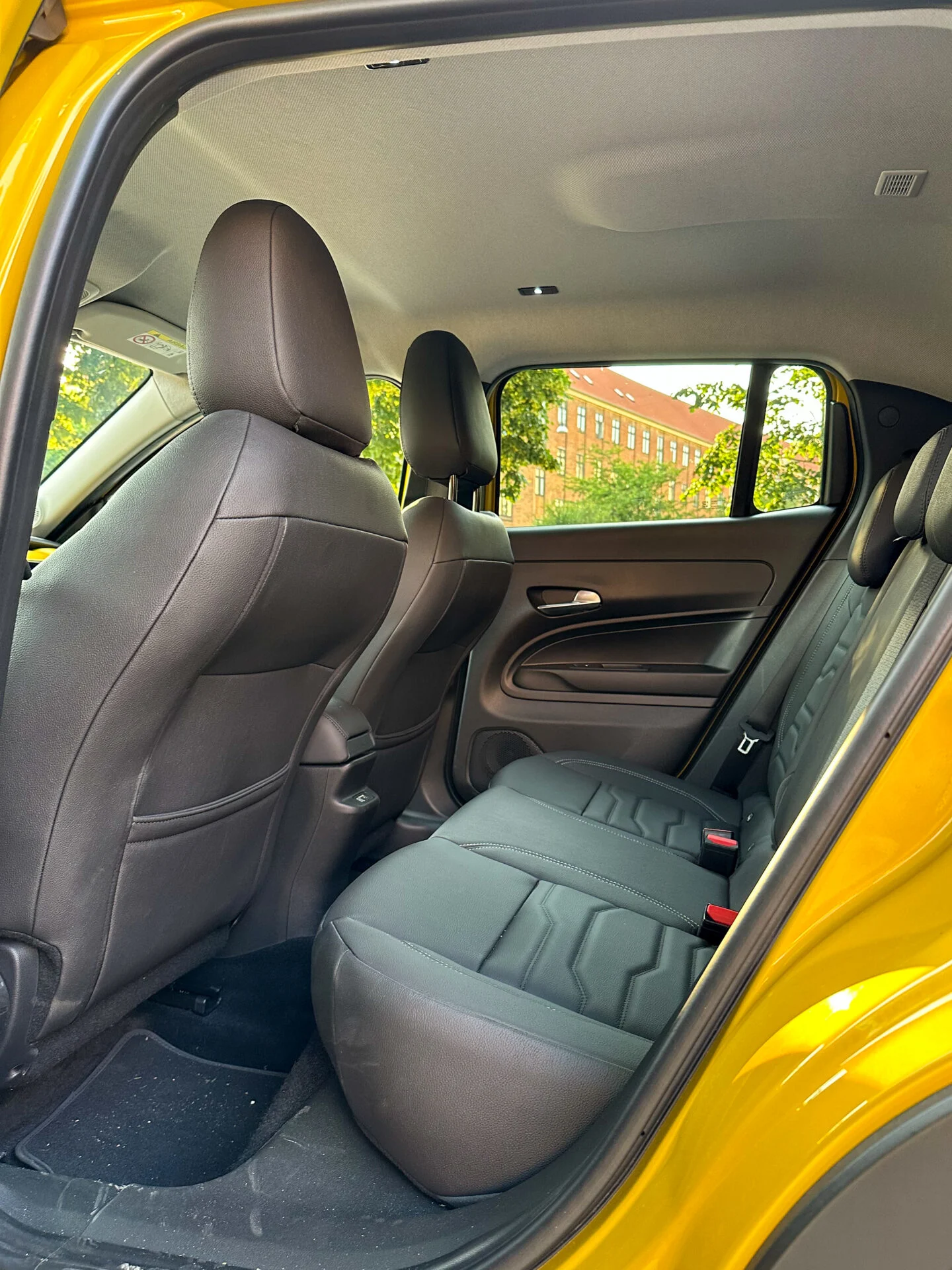 Trods tiltagene for at skabe mere benplads, er den ikke imponerende. Man sidder naturligt med lårene i siddepuden og benene i gulvet, mens forsædernes bagbeklædning dog hurtigt når knæene, hvis man overskrider 1,85 meter i højden. Ind- og udstigning bliver desuden hurtigt en halvknoklet affære, fordi åbningen er ganske smal. Ikke kun for store mennesker, men også for store autostole.