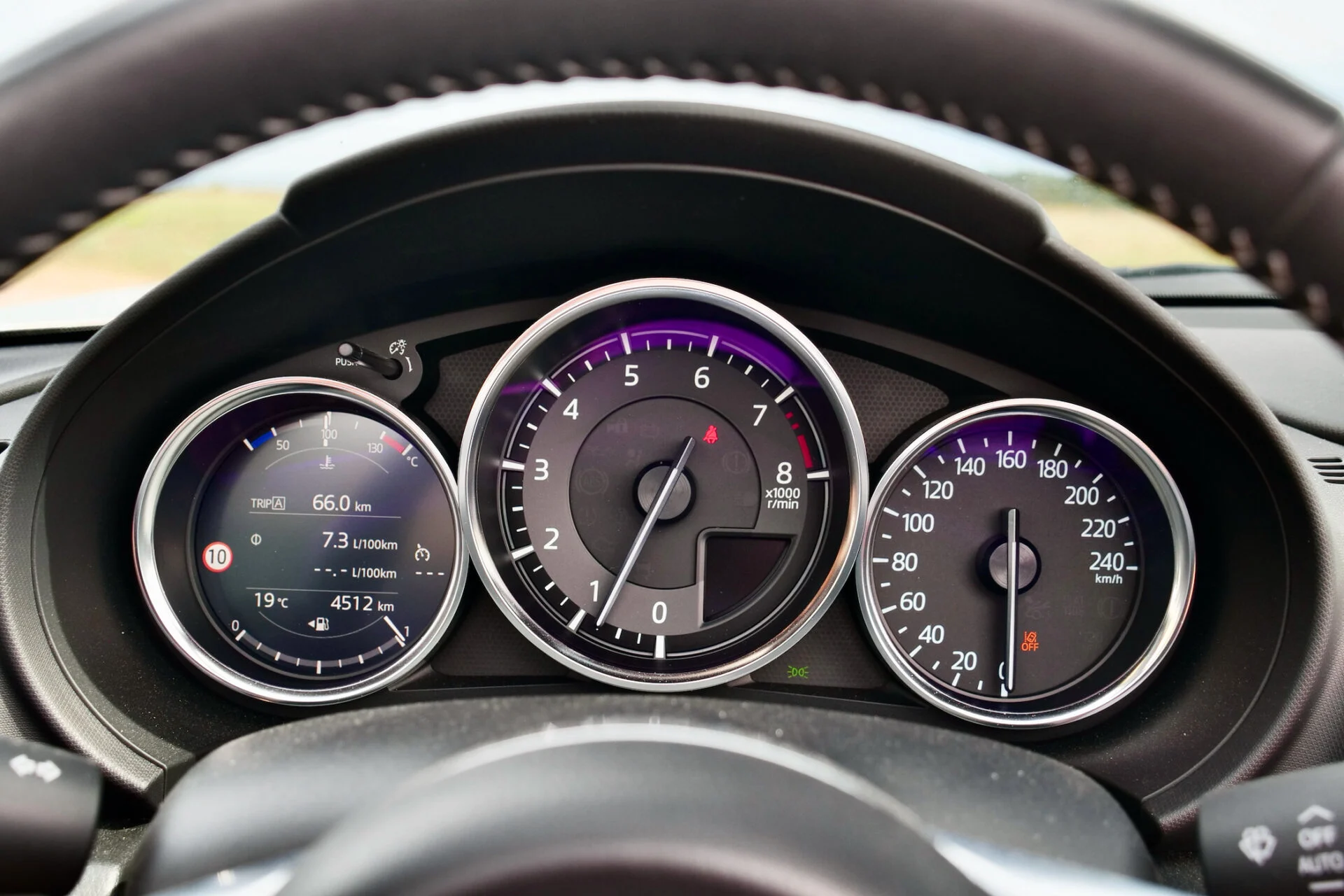 MX-5 er en af de meget få biler, man kan have det sjovt i, selv når man kører langsomt. Den liver op i det øjeblik, jeg trykker på startknappen. Den ryster i konstruktionen, signalerer at den er 110 procent klar. Det perfekte koblingspunkt, den lille gearstang som ligger helt naturligt for højre hånd og bedre bundtræk end den nogensinde tidligere har haft. Fra hjulene begynder at rulle føler jeg mig integreret i MX-5 og en del af kørslen – ikke bare en deltager i turen.