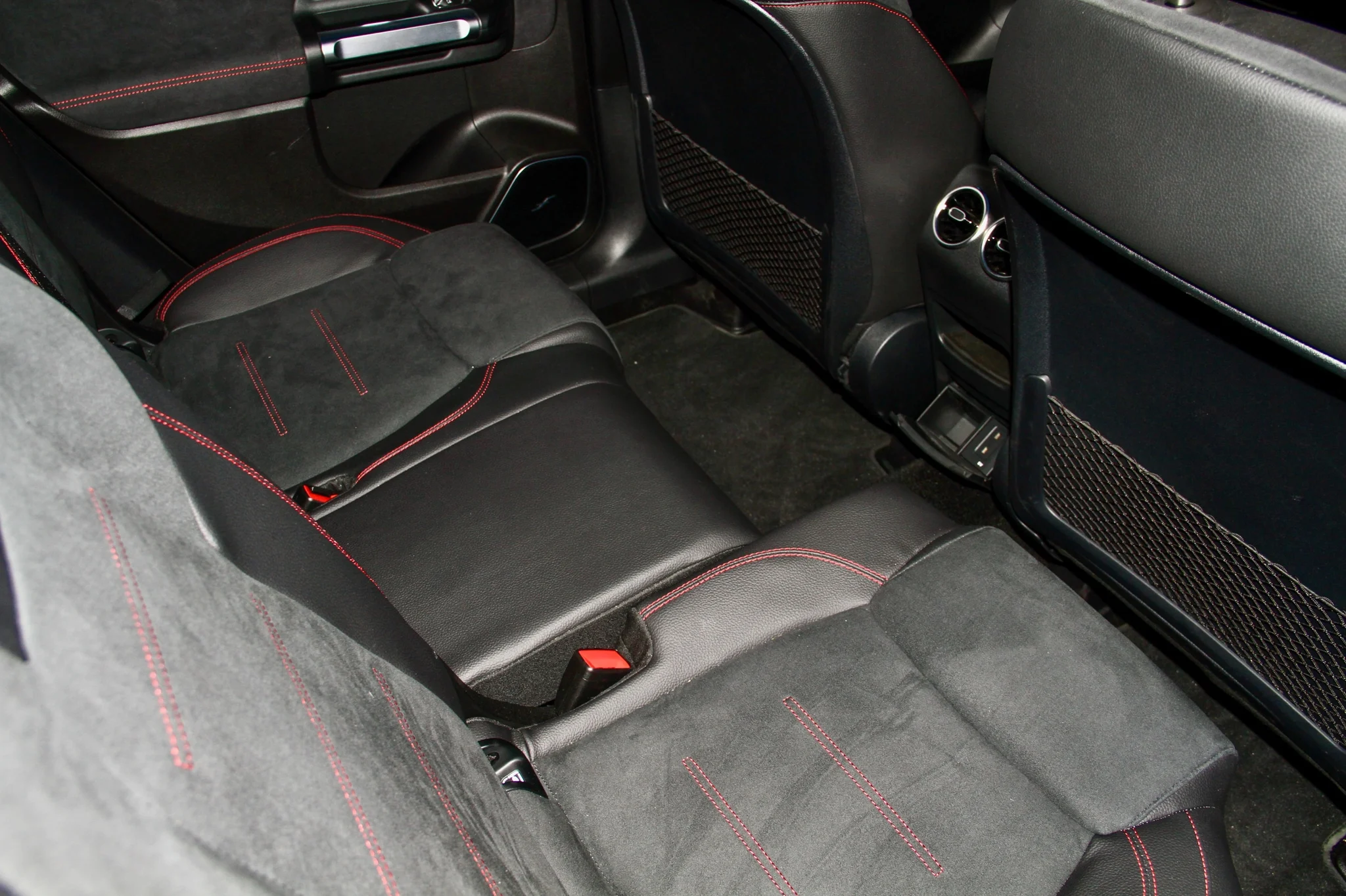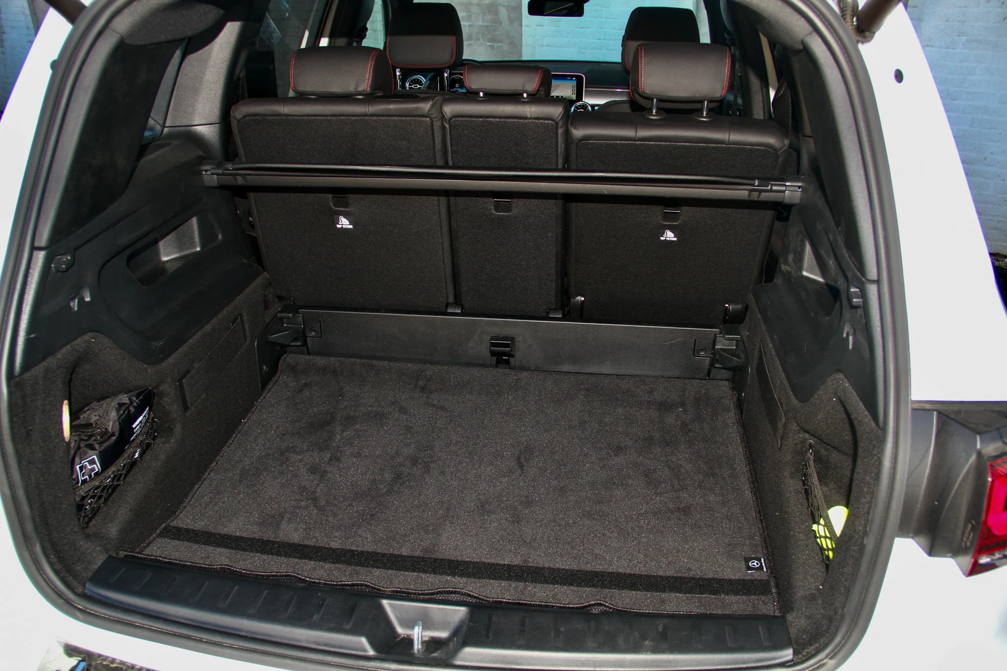 GLB viser sig samtidig at være langt mere rummelig end både GLC og C-Klasse stationcar. Med udgangspunkt i A-Klasse-platformen med forhjulstræk, er der fremragende plads i kabine og bagagerum. Den er faktisk så rummelig, at man for cirka 17.000 kr. kan tilvælge to ekstra (nedfældelige) sæder bag række to, hvor man kan placere børn eller svigermødre med en højde op til 168 cm. I versionen med fem sæder, som vi tester her, er bagagerummet på op til 1.755 liter, og bagsædet kan justeres 14 cm frem og tilbage. Enten til mere plads i bagagerummet eller mere plads på det meget rummelige bagsæde.