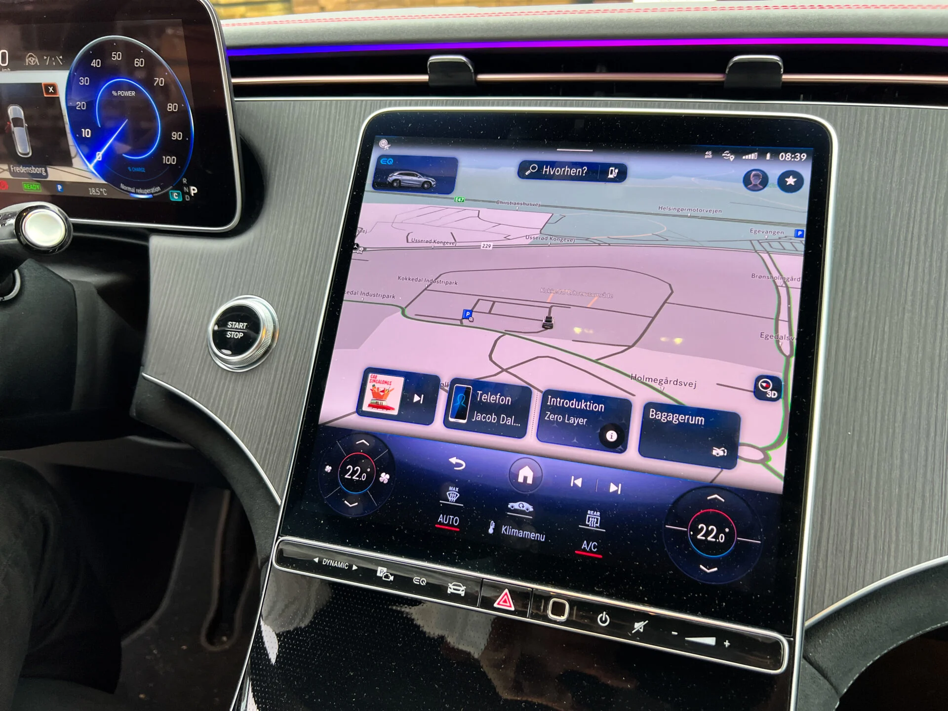 Ærligt; Du kan rigeligt “nøjes” med den “lille” på 12,8 tommer i midten – særligt når det går op for dig, at du skal betale 107.000 kr. for den store. Skærmen fungerer reagerer hurtigt og er en fornøjelse af benytte, når man lærer hvordan menuerne er bygget op. Hyperscreen er i øvrigt kun muligt som ekstraudstyr i de to største motorvarianter.