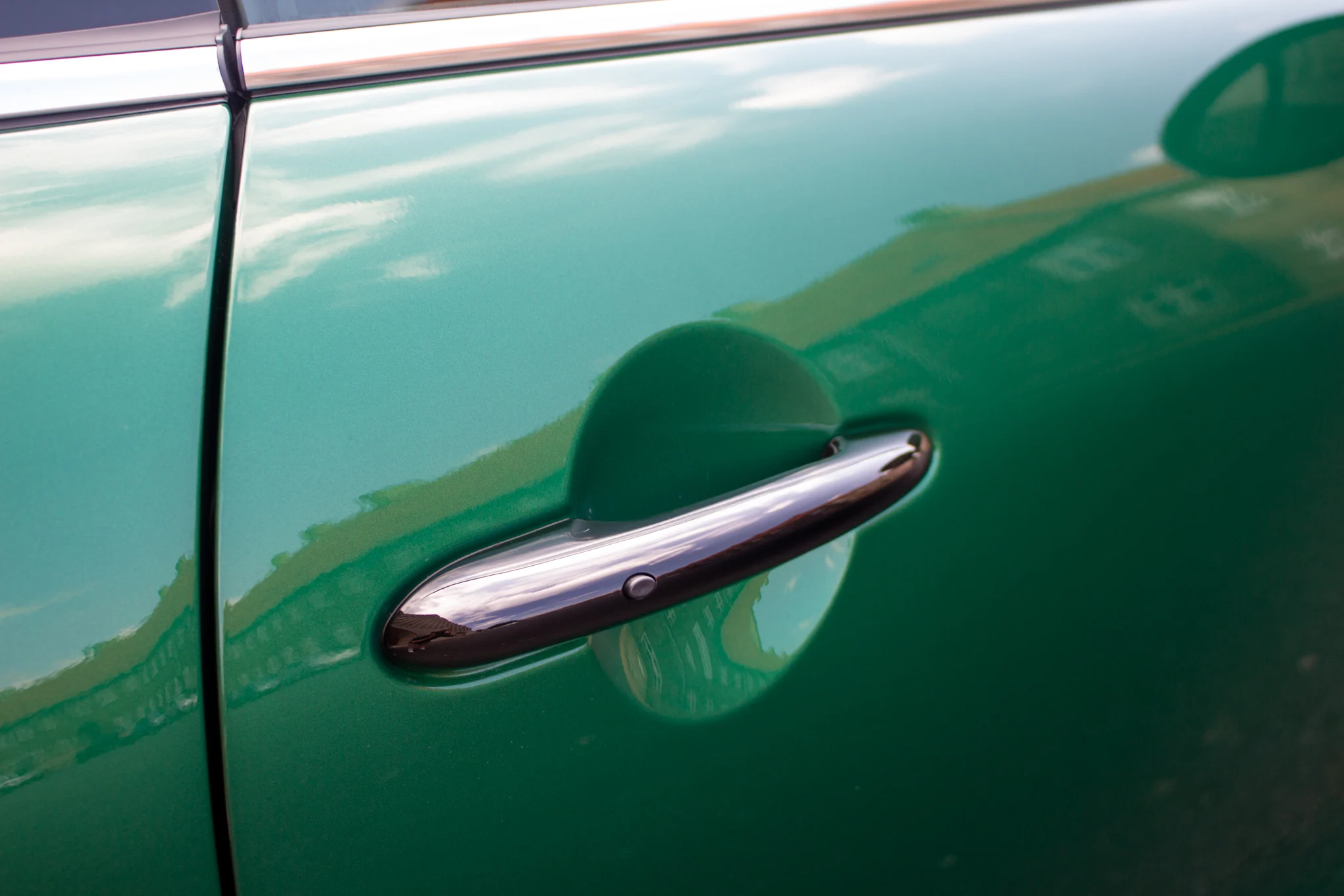 Jeg parkerer bilen foran et svinagtigt dyrt bageri med et diskret smil ovenpå den lille men friske smuttur. Selvom jeg bliver tørret for en croissant og en surdejsbolle, vokser smilet kun, når jeg træder ud af bageriet igen og ser den kompakte Mini i farven British Racing Green.