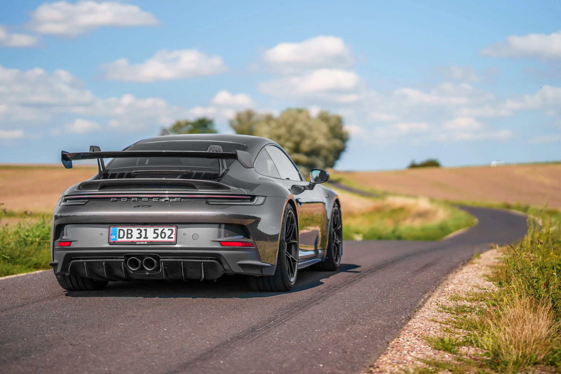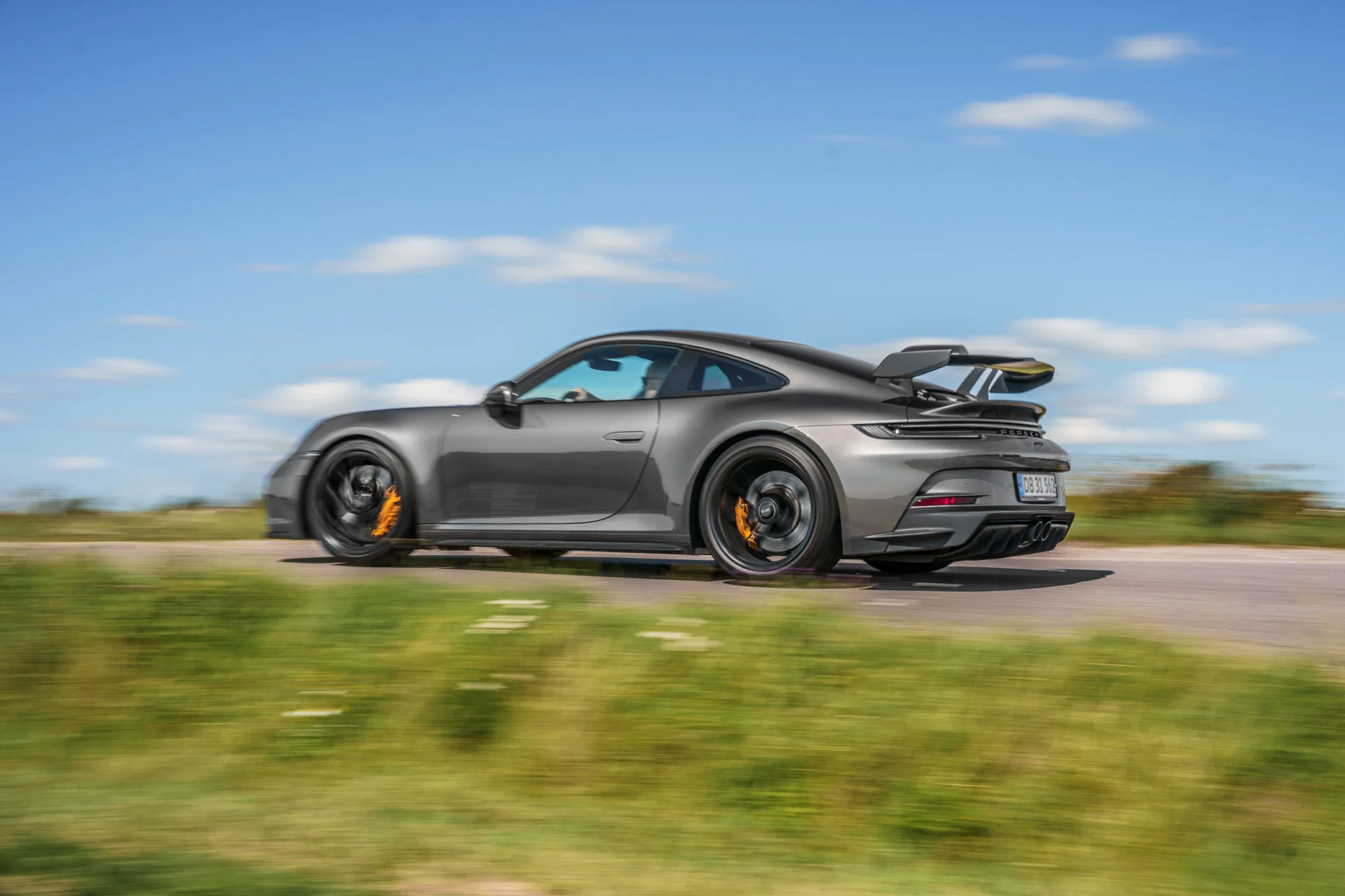 Vi er endelig ude af byen og rammer tilkørselsrampen på motorvejen på vej mod Roskilde. Det er første gang, at vi trykker GT3 lidt på maven og første gang, at vi hører motoren synge ved 9.000 omdrejninger. 9.000! Dem der laver de biler her, de ved altså, hvad de laver. Det er også første gang, at vi for alvor mærker, hvor hurtig GT3 egentlig er. Boxermotoren, der i øvrigt ingen hjælpemidler har i form af turbo eller anden nonens, yder 510 hk. Det lyder ikke voldsomt, men det er rigeligt – sådan har det altid været i GT3. Hvem har egentlig brug for mere end 500 hk i en bil, der vejer omkring 1.500 kg?